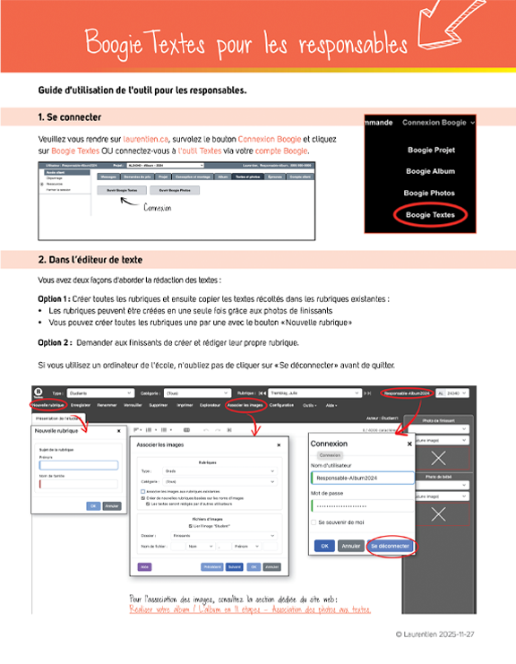 - Placer automatiquement les noms et les textes sous les bonnes photos dans les pages de Boogie Album