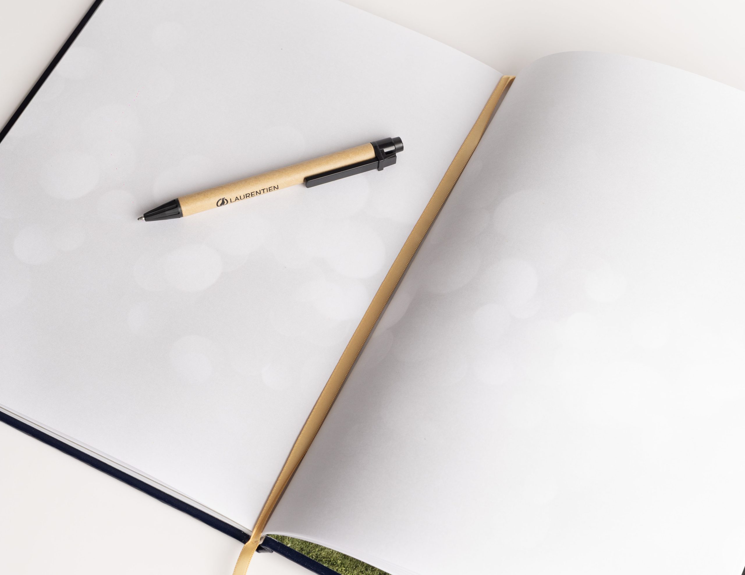 Nous proposons un cahier de signatures gratuit inséré à la fin de chaque album, ajouté au nombre total de pages de votre contrat. Par exemple, un album de 120 pages auquel nous ajoutons le cahier de signatures aura 136 pages. Ce cahier est imprimé sur du papier 140M Offset (non glacé), permettant aux élèves d’écrire au stylo sans faire de bavure.