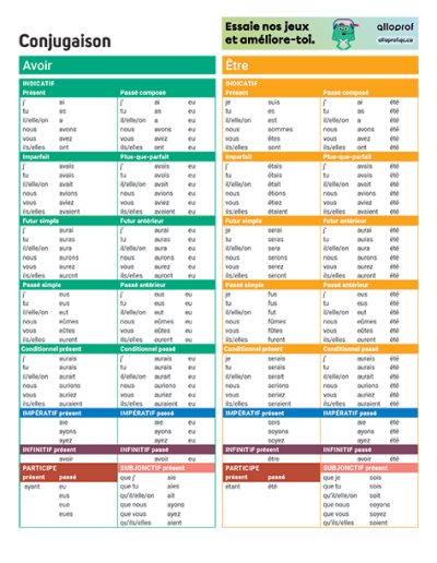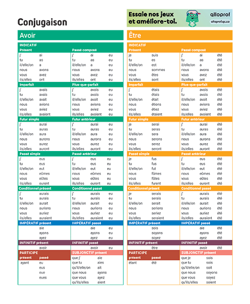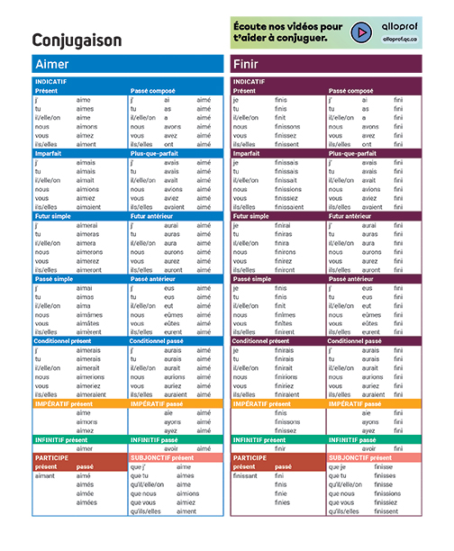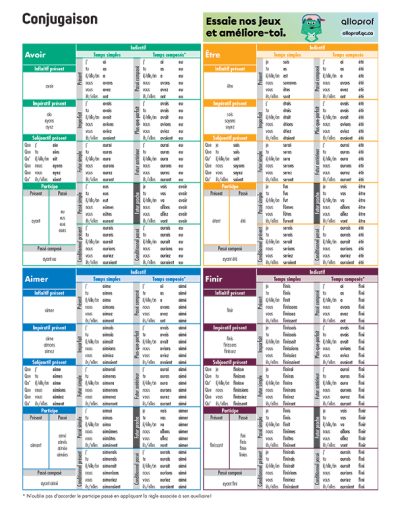 Conjugaison 1er cycle : Avoir – Être – Aimer – Finir – Aller – Faire – Dire – Venir