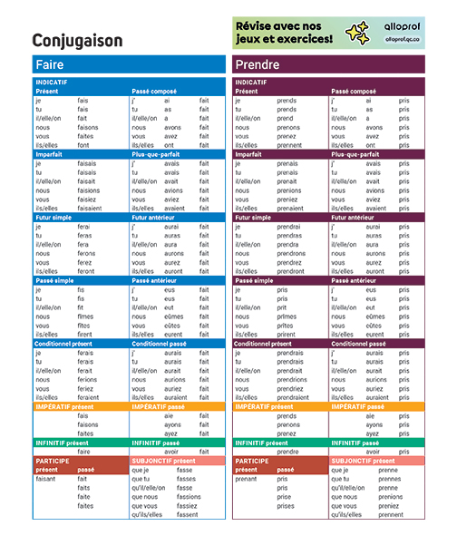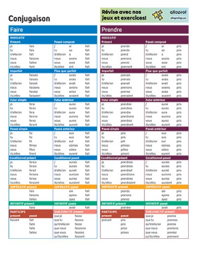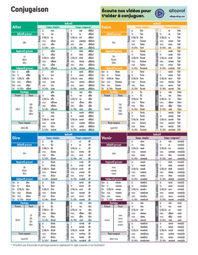 Conjugaison : Aller – Faire – Dire – Prendre