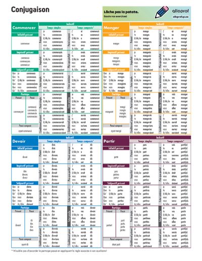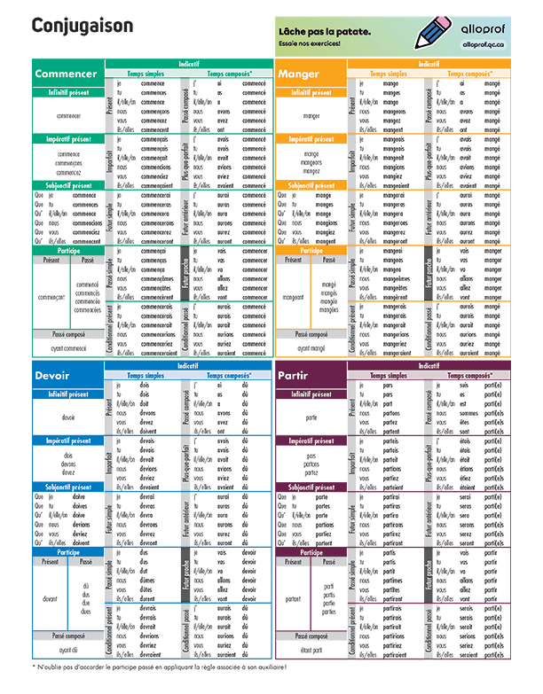 Conjugaison 2e – 3e cycle : Commencer – Manger – Devoir – Partir