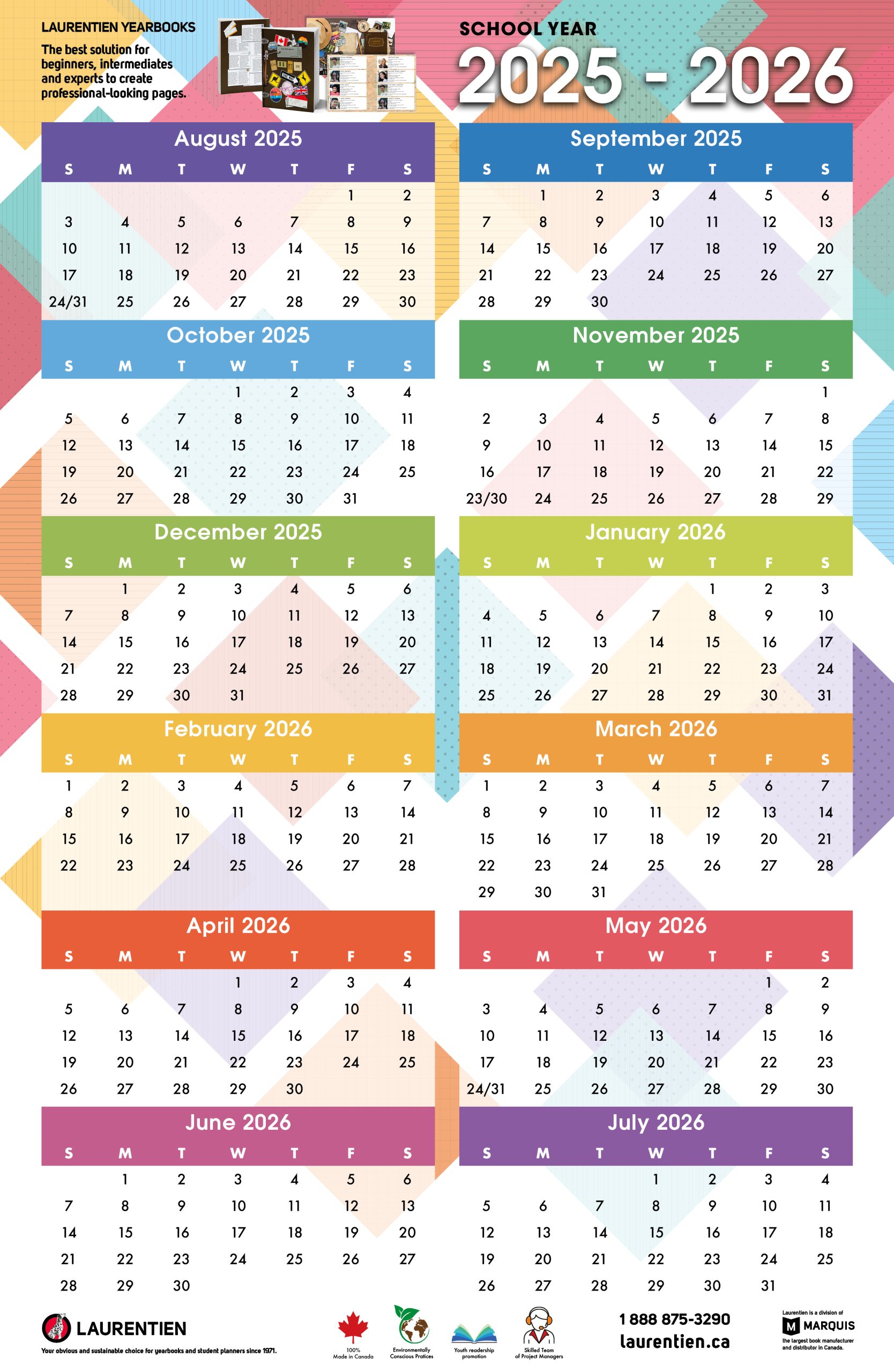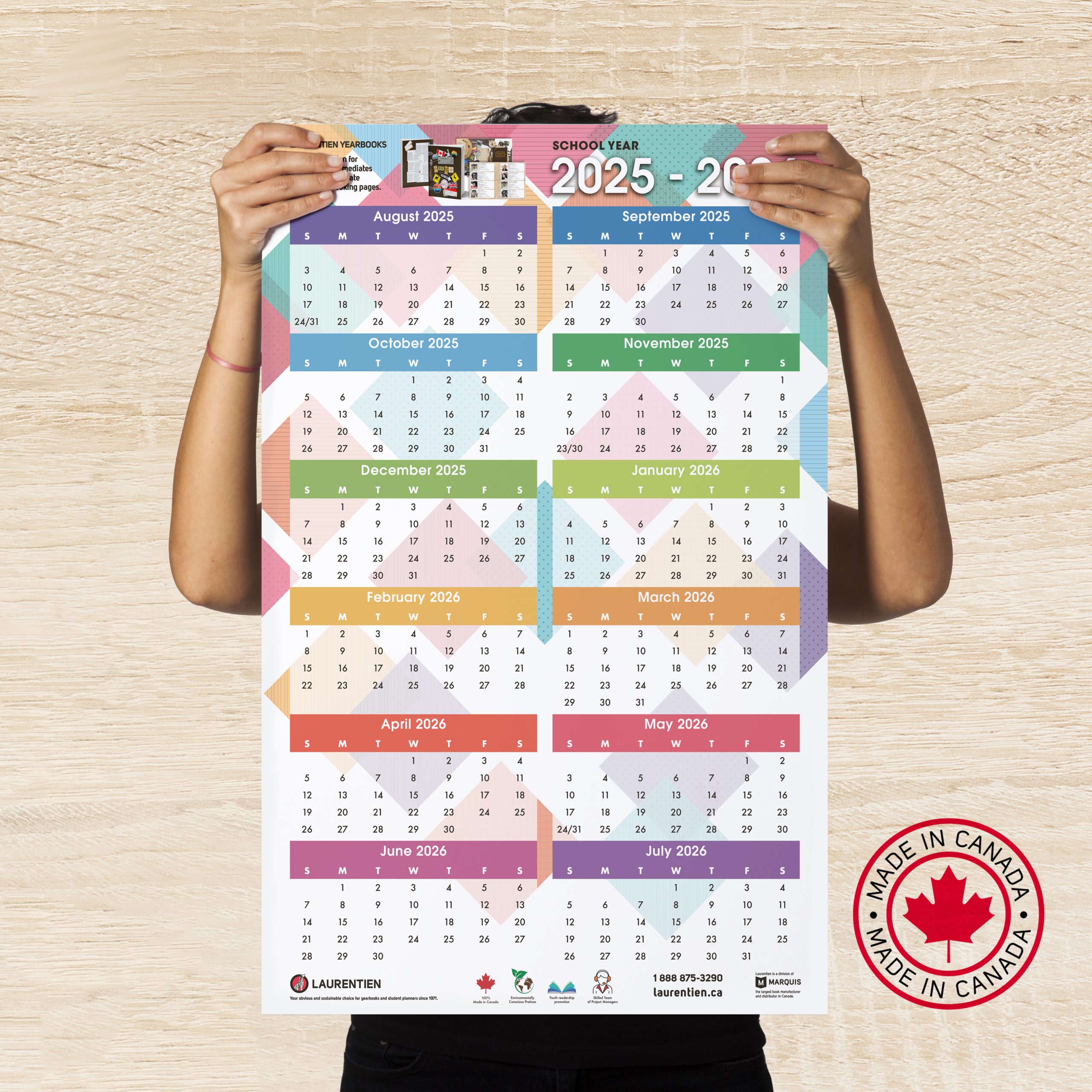 We offer a wall calendar made entirely in Canada. It is available in English and French. Visit our store to purchase it.