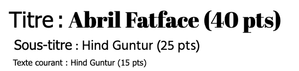 Je recommande toujours d’utiliser deux ou trois polices de caractères maximum. Tu peux utiliser une police de fantaisie ou script pour les titres, et des polices avec ou sans empattement pour les autres textes afin d’en optimiser la lisibilité.